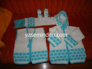 Su yeşili kapşonlu takım